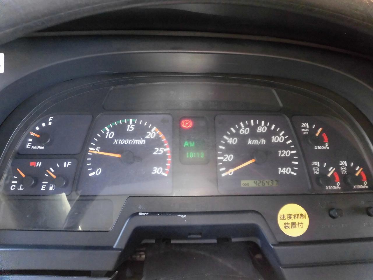 ラッシングレール2段、引き出しフック9対、FRP製工具箱880mm、カラーバックモニター、リターダー、純正導風板、リモコンドアキー、記録簿あり、室内清掃済み、運転席シートほつれ・汚れあります、外装小傷あり