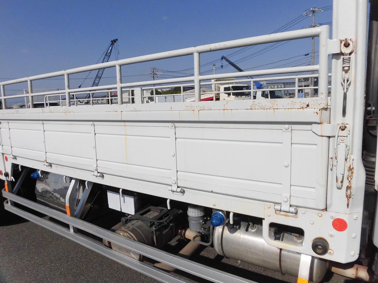 | 5方開あおり、床鉄板張り、埋め込みフック5対、左右アオリ補助枠(丸パイプ加工+300mm)、ステンレス工具箱750mm×3個、キャビン上シートデッキ、キャビン左右両面はしご、リモコンドアキー、メッキパーツ(Fバンパー、Fグリル、コーナーパネル、ミラーカバー、サイドステップアンダースポイラー、ドアハンドル)、室内清掃済み、床板波あり、ボディ傷・さび、左ドアタッチアップ補修あり、Fガラス飛び石あり |