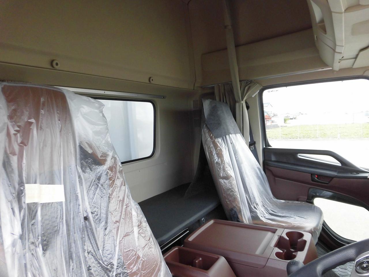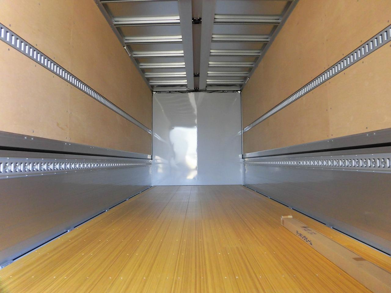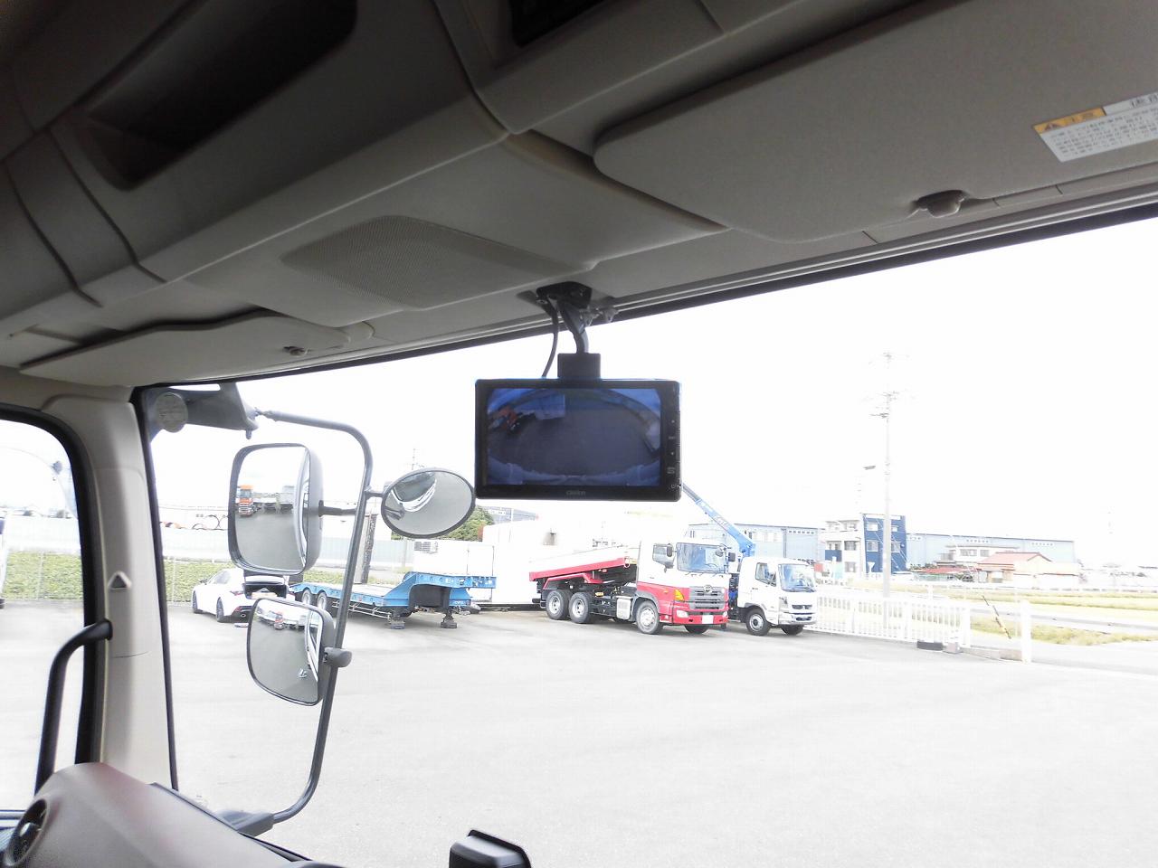 | ハイルーフキャビン、リアエアサス、ラッシングレール2段、引き出しフック7対、ステンレス工具箱750mm、カラーバックモニター、エアサスシート、カーテンセット(ラウンド、リア、間仕切り)、アルミホイール、タイヤ:ブリヂストンM888、ラッシングバー・ラッシングベルト付属 |