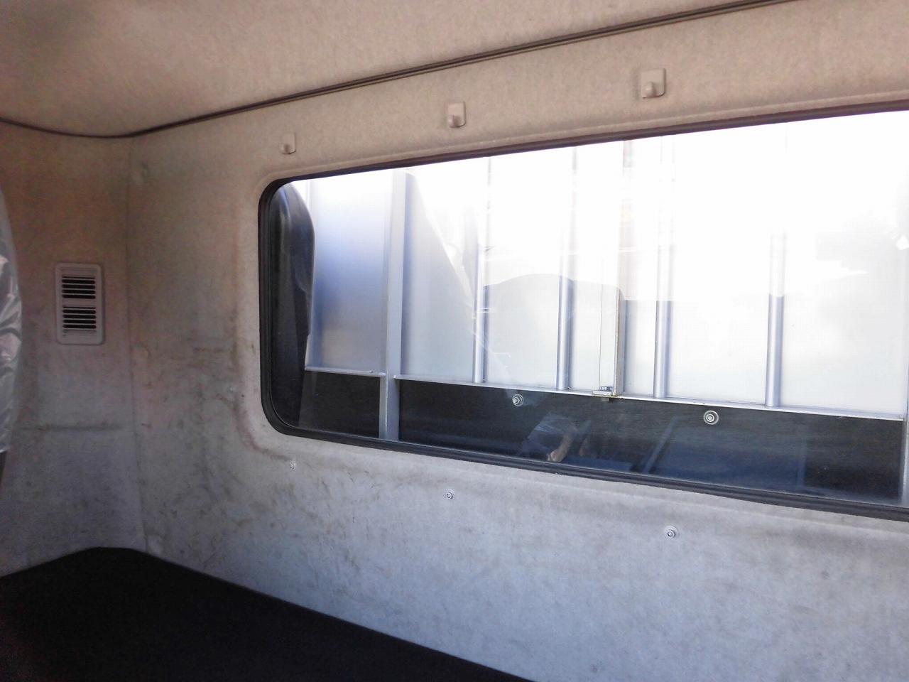 | 3方開アルミブロック、埋め込みフック6対、キャビン上シートデッキ、社外ナビ(パナソニックCN-E300D、バックカメラ付き)、エアサスシート、リモコンドアキー、アルミホイール、室内清掃済み、ボディ所々傷・へこみあります、Fバンパー右端小へこみ、サイドバンパー曲がり、運転席シート切れ・補修跡あり、内装汚れ |