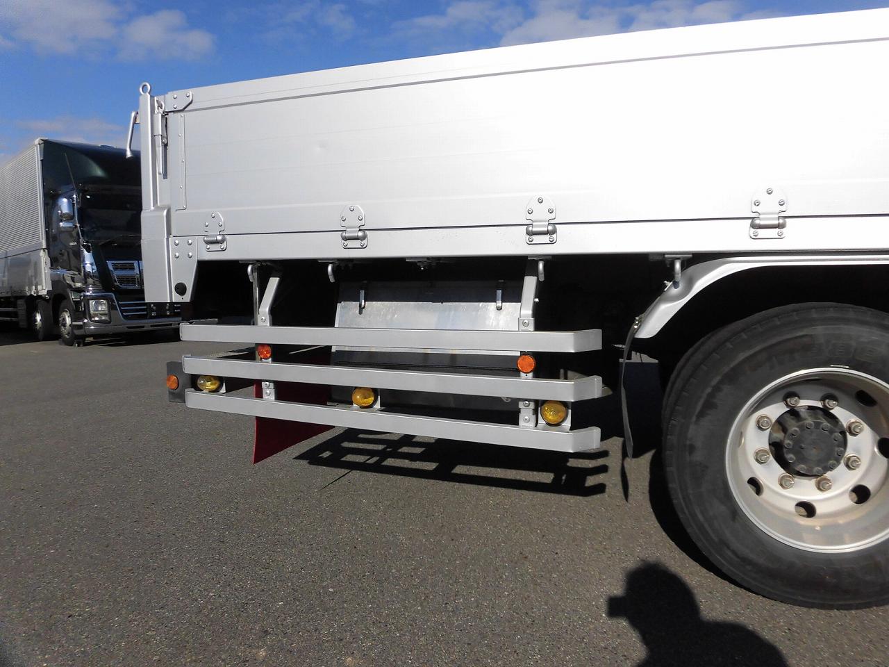 | 3方開アルミブロック、床鉄板張り、埋め込みフック9対、ステンレス製工具箱750mm、カラーバックモニター、パワータード、キャビン左右両面はしご、アルミホイール、メッキパーツ(Fバンパー、Fグリル、コーナーパネル、ミラーカバー)、室内清掃済み、左ドアへこみあり、Fバンパー右端傷、アルミブロックシルバー塗装、床板波あり、外装小傷 |