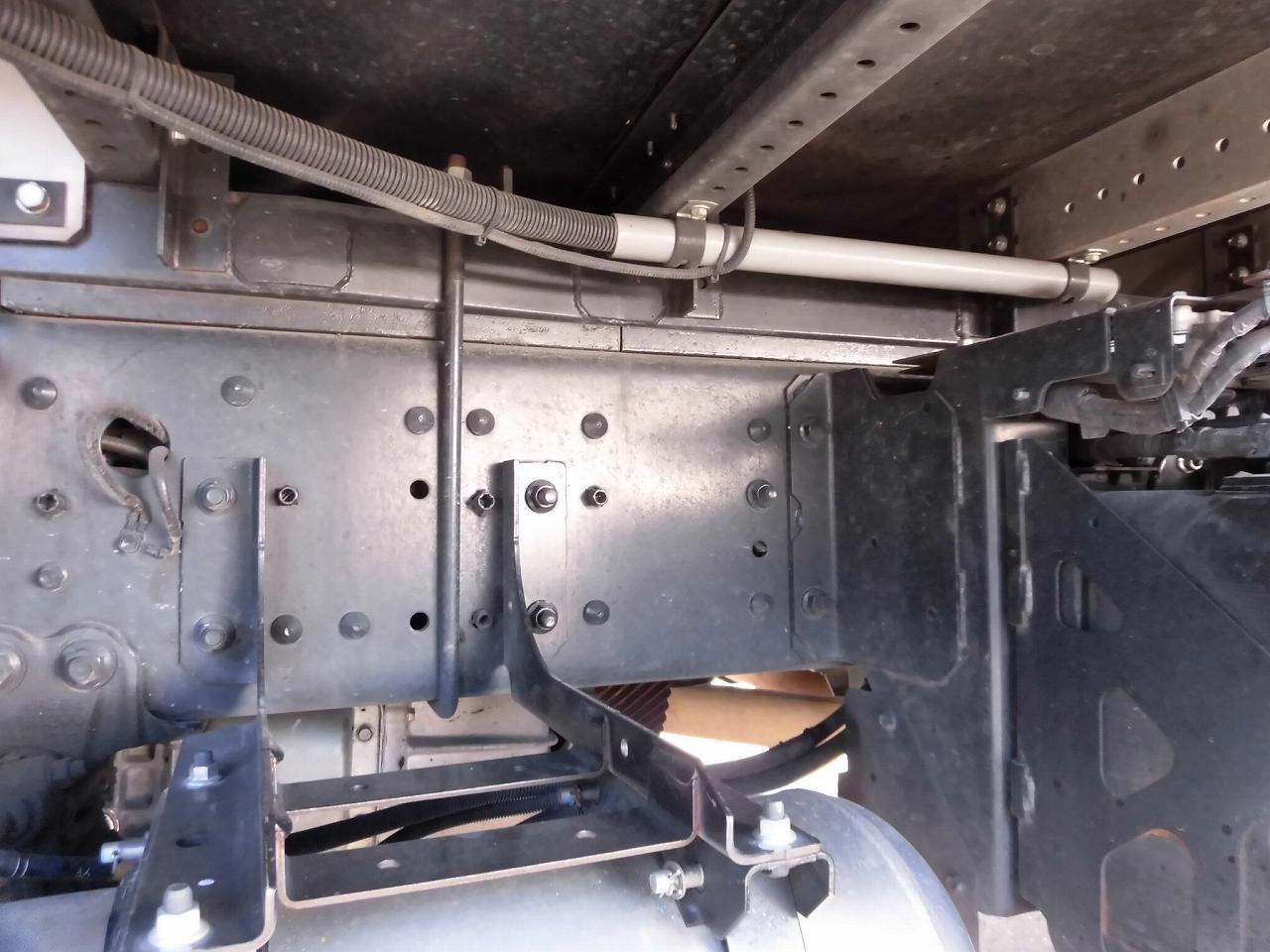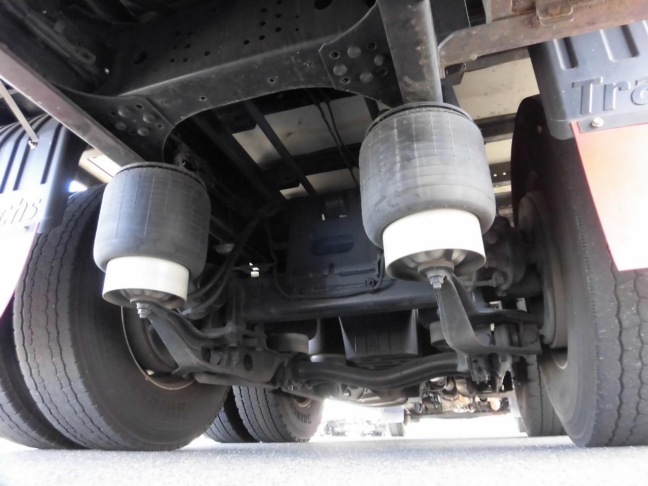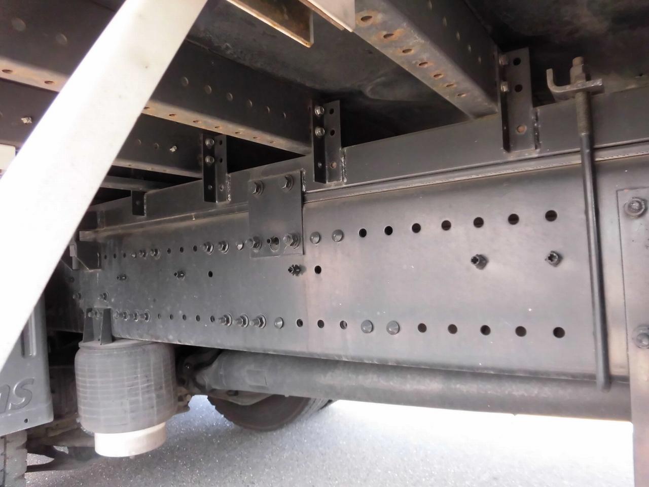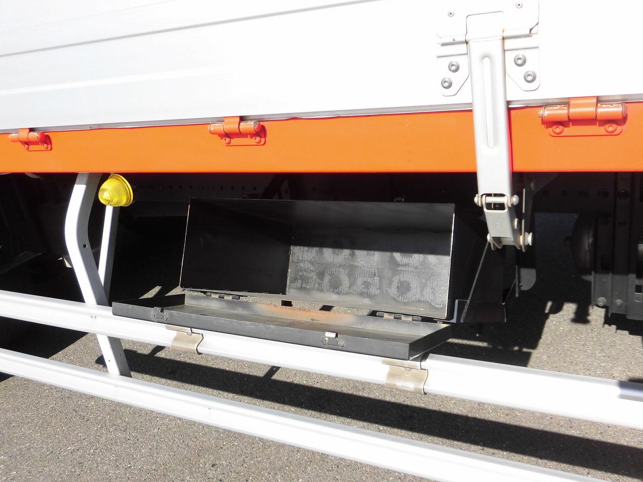 | ハイルーフキャビン、ラッシングレール2段、引き出しフック9対、床鉄板張り、FRP製工具箱880mm、鉄製収納箱、カラーバックモニター、リターダー、リモコンドアキー、アルミホイール、メッキパーツ(Fバンパー、Fグリル、ミラーステー、ミラーカバー)、室内清掃済み、左あおり擦り傷あり、左右アルミブロック下部曲がりあり |